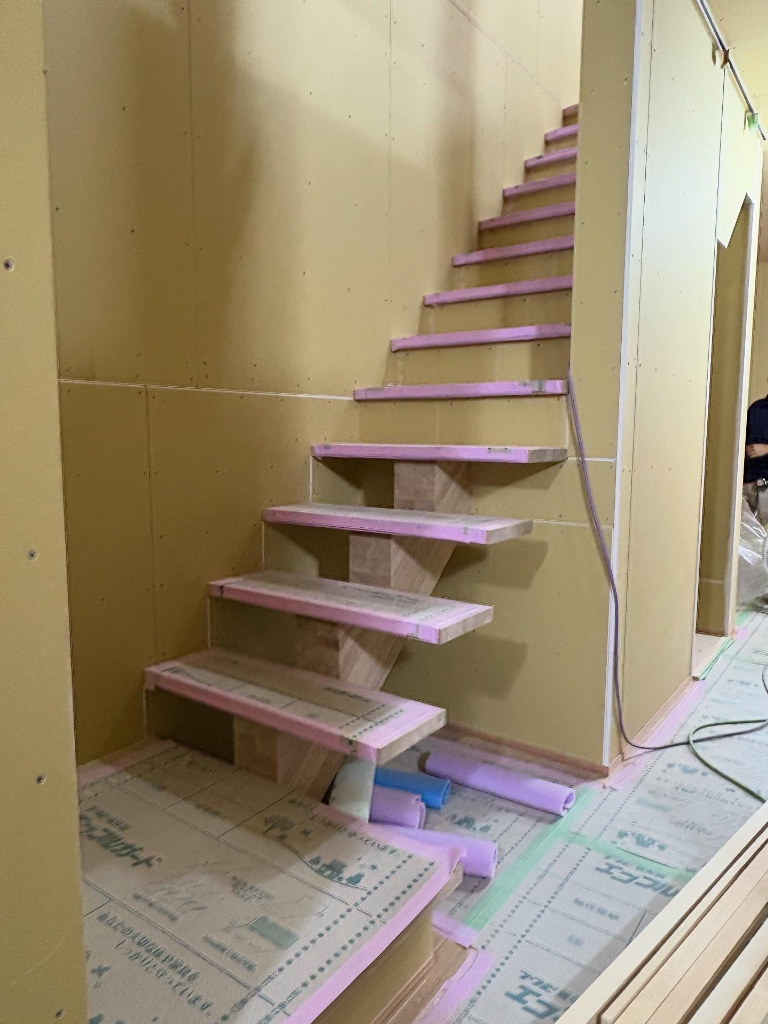 施工では、段板の強度や取り付け精度が特に重要になります。一本で支える分、寸法や角度を正確に合わせないと仕上がりや安全性に影響するため、慎重に作業を進めました。