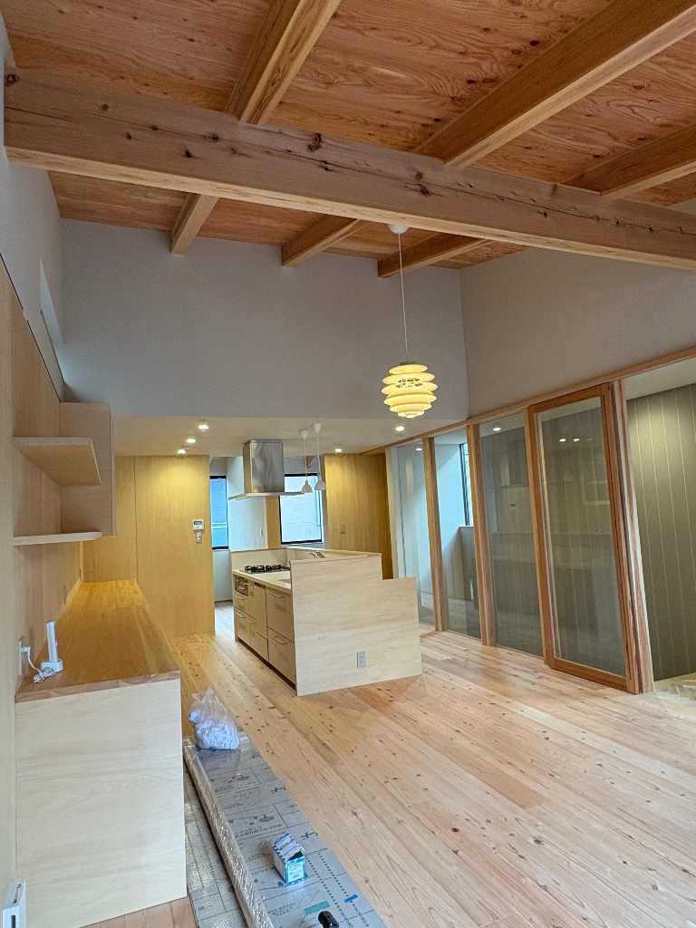 基礎工事から始まり、構造、内装、そして仕上げまで、一つひとつ丁寧に作業を重ねてきました。
