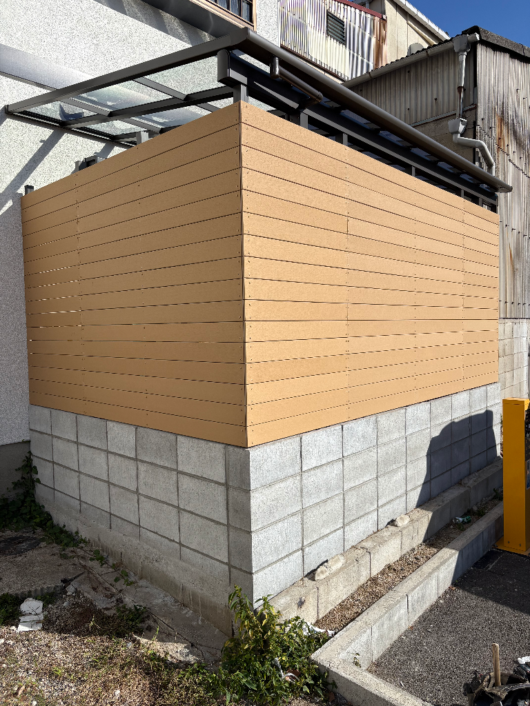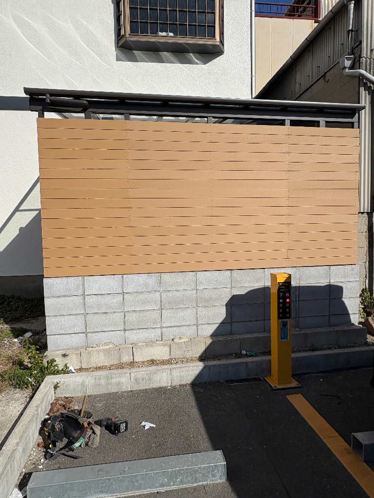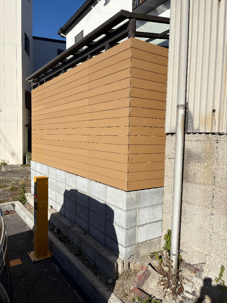 今回は、人工木材(樹脂木)を使って板塀を施工しました。